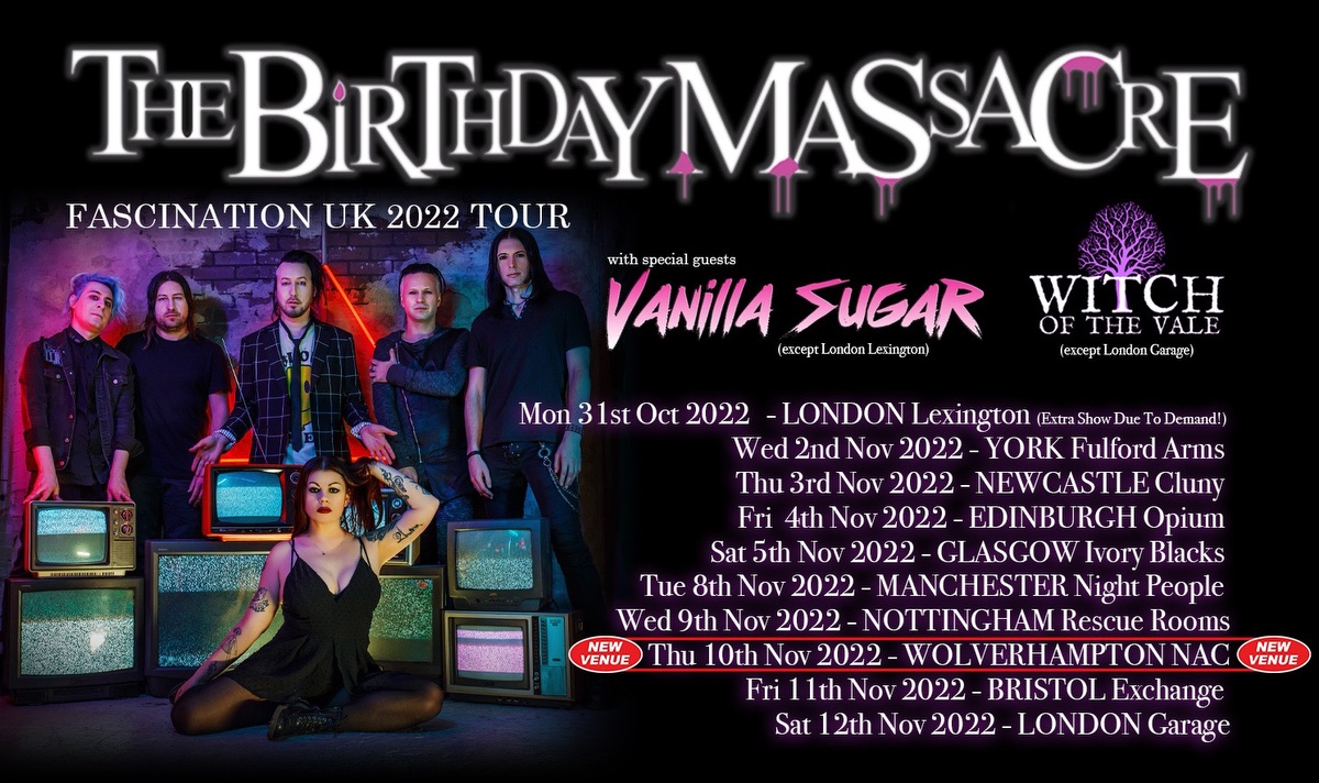 The Birthday Massacre 2022 UK tour dates Below: (Support Vanilla Sugar and Witch of the Vale)