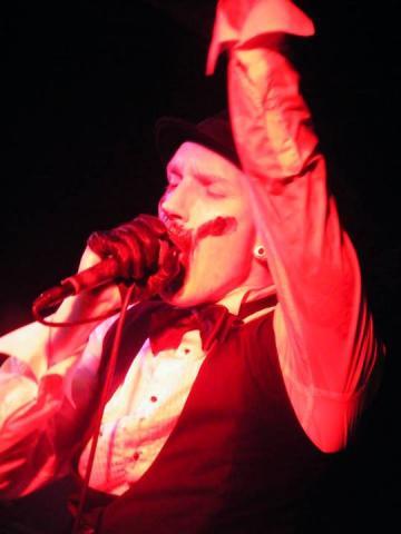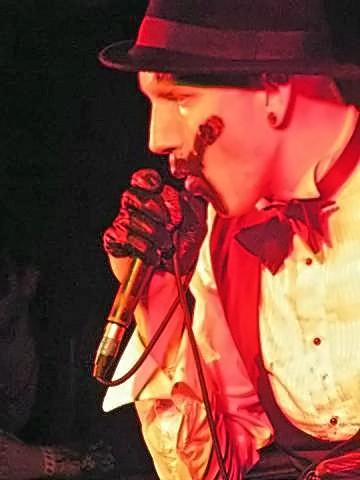 Singer and multi instrumentalist Daniel Graves has really picked up a lot of skills as a live performer and he commands the stage like a artist of past his years in the business.Daniel's make up looks really good tonight with a white face with a black hand on it, this reminds me of early days of Steve Strange and the Visage. Their is a a lot of women in attendance tonight and they go mad every time that Daniel goes near them and some of them are getting a little frisky down the front while they get into tracks like 'Antibody, Inhuman' and the anthem 'Spit it Out' their are tops off a plenty in the Underworld tonight as Aesthetic Perfection start a dance floor frenzy.