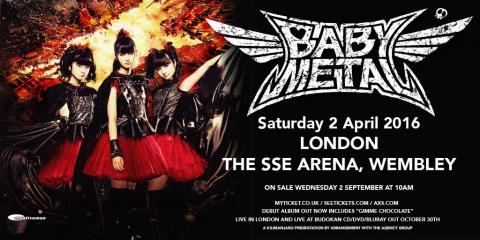 The Worldwide phenomenon BabyMetal will play their biggest ever UK show next year, headlining the London, Wembley SSE Arena on Saturday April 2nd. They have invaded the Download Festival and Metal Hammer's Golden Gods celebration, and are one of the most talked about Metal bands of 2015... with covers to many a magazine.