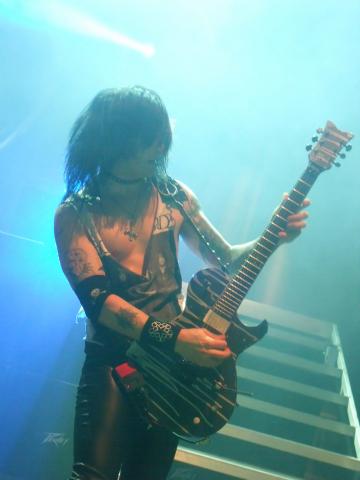 Opening up with 'Shadow Die' off the bands last album which starts off like soundtrack music from a Tim Burton movie before it breaks into Avenged Sevenfold Esq. riffs and launches the set into motion. I like the way the stage is set up with ramps and ledges like at an old Motley Crue show and the members of the band run up and down these throughout the show while playing their instruments. This song is one of the best songs off the 'Wretched and Divine' album and does have a great chorus to it, that is kicked in with a shouting bit similar to A7x material.