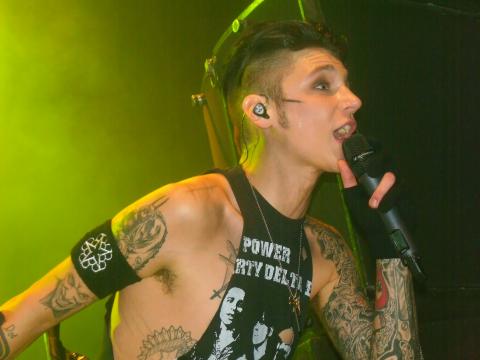 'I am Bulletproof' does have some anthem qualities but is quite complexed at the same time, it has many dimensions to it and even though it's catchy and a little poppy you hear new elements to it every time you listen. The title track to the new album which is up next in their set is a nice sing-a-long track that everyone can join in with and Andy Biersack sings every note perfectly and even does the screaming parts really well. They follow this with the bands breakthrough song 'Knives and Pens' which is a real fan favourite and one of their heavier tracks, so everyone in the audience goes really crazy for this. Screaming out the lyrics as they go, I do not think the band will ever not play this song in their set because it's a real crowd pleaser.