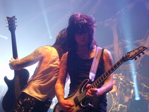 They follow this up with two storming tracks 'The Legacy' and 'All your Hate' both of which blast the set up in tempo. Bass player Ashley Purdy kicks into 'The Legacy' nicely on the bass guitar and you know what it is by the second note. He is also prominent on 'All your Hate' a track I have always really like when they play it live. I am not so keen anymore on their Billy Idol cover of 'Rebel Yell' it was great when they first played it, but they have played it for far too long now and think maybe it's time for it to be out of their set. This is taken back up by the ever so brilliant 'Perfect Weapon' that just get's better and better the more they play it and Jinxx and Jake's guitar work is just simply brilliant on. This song see's them back to back like Zacky Vengeance and Synyster Gates from Avenged Sevenfold twiddling their guitars like proper guitar players should do.