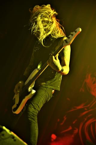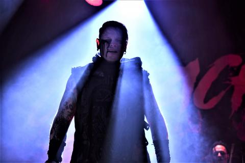 Andy comes to the stage with his hood up, and is a haunting figure as he breaks into this track. The current line-up consists of Andy LaPlegua (Vocals) / Eric 13 (Guitar) / Dane White (Drums) / Jamie Cronander (Guitar / Keyboards / Percussion) and Elliott Berlin (Bass / Keyboards / Percussion). One of the other things I like is that Combichrist use the whole stage, everywhere you look their is something to watch. There is nothing boring about Combichrist, they know how to put on a good show. Which is almost turning into the Combichrist party, which is shown in their meet and greets (VIP) and tracks like 'Maggots at the Party'. I think what the fans really want in a classic Combichrist performance is the rhythmic Electronic drum lead frantic beats, which are most present in songs like the classic 'Get your body Beats', 'What the F**k is wrong with You'. Both of these would have to be present in any fans dream setlist, I couldn't see anyone leaving them out.