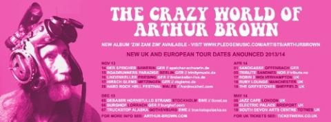 Be a part of the adventure at one of Arthur Brown’s upcoming 2014 UK shows Below: