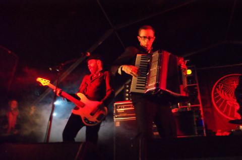 Flogging Molly ***1/2 (Jagermeister Stage) bring the Irish connection to the Jagermeister stage, but I am sure they would rather have a Guinness than a Jagermeister. Singer Dave King says he can't stand Jagermeister and he just wants to drink the black stuff, I think this is from his Celtic roots in Hollywood California. Their set today is a good steady and the crowd go crazy for them with loads of Irish flags being carried by loads of members of the audience.
