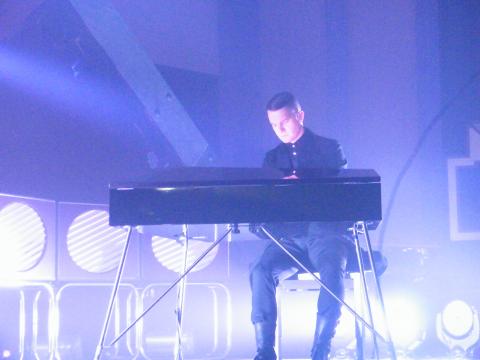 Hurts ****1/2 build up the anticipation with what it seems five different mini intro's before they break into opening number 'Mercy'. Theo comes onto the raised platform where his microphone stand and Adam's piano resides. Theo has a hood over his head looking very menacing, like Marilyn Manson when he comes on with his hood up for his shows.
