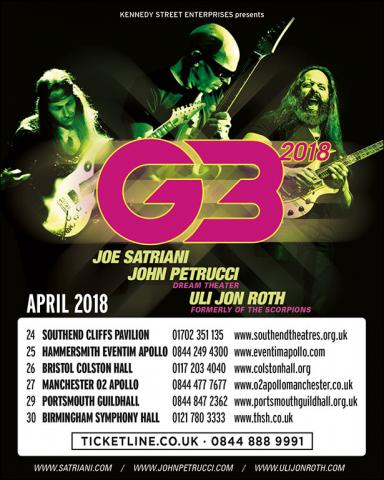 2018 'G3' UK Tour dates Below: (Feat Joe Satriani, John Petucci and Uli Jon Roth)