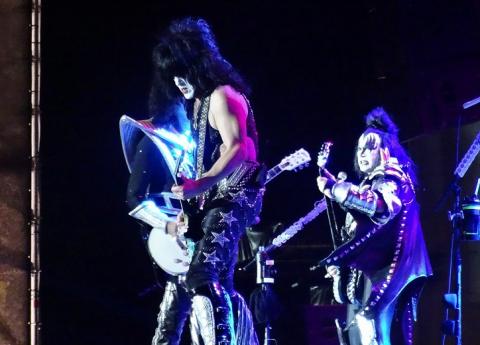 KISS ***1/3 (Main Stage 1) For me KISS are Paul Stanley / Gene Simmons / Ace Frehley and Peter Criss and should not be done in full make up, without all four members being on the same stage. We don't have a problem with current members Tommy Thayer and Eric Singer, we actually loved what Eric did for Alice Cooper. But we do think they should not wear the make up and costumes of past members, they could have their own costumes and make up... this would make more sense and be a lot better. But I do have a problem in being deceived, and I think the fact members are hidden behind make up that is not their own is doing this. It makes fans think they are getting the real deal, when they are not. I actually thought the last album 'Monster', was KISS' best work in a long time and is a record that people must purchase.