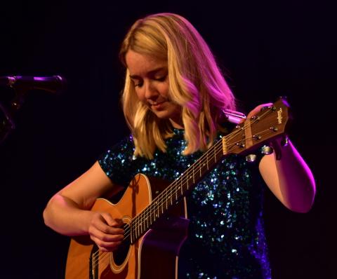 Kitty Macfarlane ***** is a singer songwriter based in Bristol, but from the depths of Somerset originally. Tonight she is just up the road from her current home town and visiting the wonderfully intimate Chapel Arts Centre in Bath. Tonight's performance see's her alone on the stage with a guitar, and sampler in a sparkly green dress... which we later find it is based on a eel, but more on that later. For the opening number ‘Starling Song’ the guitar stays where it is and her wonderful singing voice is accompanied by sample of birds from a song inspired by the murmuration of starlings in Somerset, her home county is certainly her inspiration.