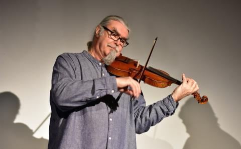 Later in the set, following the interval, Peter has his solo piece on the violin ‘English in E Major’ which certainly demonstrated his considerable skill with the violin, while rooted in Folk it almost has classical overtones at moments in the tune. Throughout the whole set the percussion, of sorts anyway, was provided by their foot stomping on the hollow stage and the unspoken communication between the two was fascinating to watch too with John especially communicating via his eyes.