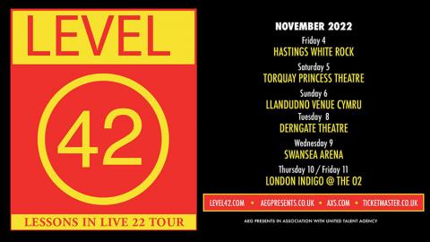 AEG Presents is delighted to announce that Level 42 will hit the road once more for the seven date ‘Lessons in Live’ UK tour in November 2022. The ‘Lessons In Live’ tour follows the hugely successful, albeit delayed by Covid, ‘From Eternity to Here’ Tour which celebrated the band’s fifth decade.