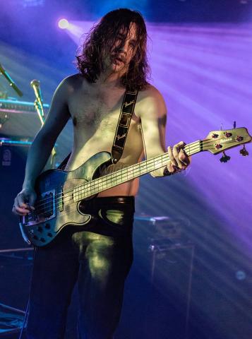 Gareth, the bands bass player stared the gig fully clothed but that soon changed and ended up topless and playing, eyes closed in the middle of the venue to ecstatic moshing by the fans. Not to be out done Alastair also ends up in the crowd, which their fans go crazy for.