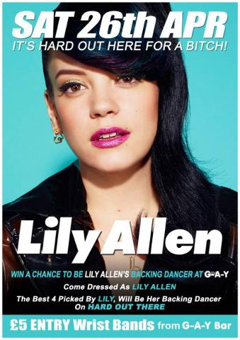 Lily plays at the London, Shepherds Bush o2 Empire on Monday April the 28th, which will be her first full London show for four years. Lily Allen will also be performing at the legendary G-A-Y club night at London, Heaven on April the 26th so if you want to see her perform 'Sheezus' and other tracks make your way down. You can get wristbands for this very special event for as usual from the G-A-Y bar, they will be price £5 and it is bound to be an event you don't want to miss. And if you dress up as Lily you could be dancing on stage with her, because the best four Lily's will be invited up and get to join in the show for one very special song where she will hopefully showcase material of her new album 'Sheezus'.