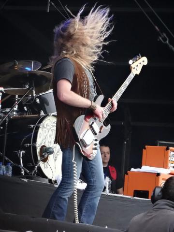 They start off well getting everyone into their early morning groove, and singer Theo Mindell does have some great chops on him and he really does look like a young Ozzy Osbourne. Yes! the hair and the clothes, it's a little weird... but kind of cool at the same time. But you have to remember that Ozzy was a real showman, and I think Theo has not quite got their yet. They open things up with a track that is not one of my favourites 'Eastern Woman', it does have a good groove to it.