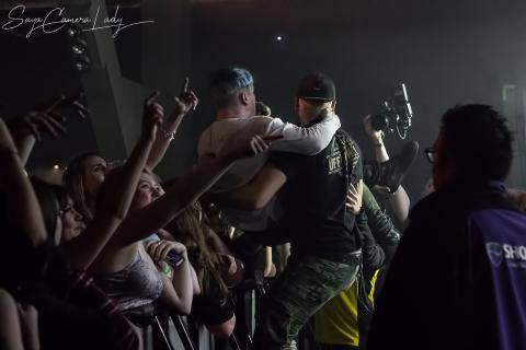 Once their set came to an end, crowd immediatly started to ask for the encore and band listened,coming back on stage performing two more songs. During the second encore song, frontman decides to do a slightly different style of crowdsurfing. Cody suddently starts crowdwalking... yes, literally walking until middle of the venue,on his way back doing the classic crowdsurf.