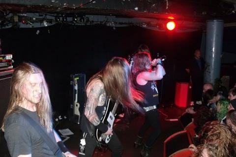 Tonight's show is a bit of an awkward one. Following a scorching set from Goatwhore, Skeletonwitch take to the stage blasting into 'I am of Death' everything is in it's place but it's not quite right. Weeks before this current tour it came out that Skeletonwitch's frontman Chance Garnette was no longer in the band and is in rehab the band started apparently doing instrumental sets but have now at very short notice Keith Lemon has jumped in to do vocal duties. (Opps! sorry, that's Andy Horn from Cannabis Corpse!)