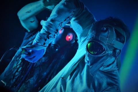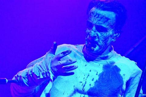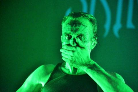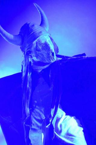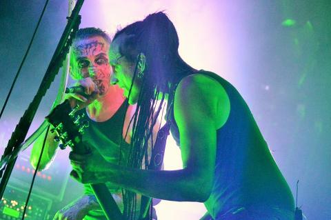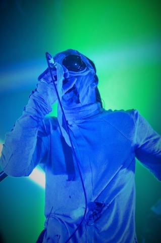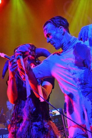 Saying all this the venue is really packed as the Canadian Industrial legends take to the stage, on the London date of the 'Down the SocioPath' European tour. Singer Kevin Oglive (Aka OhGr) starts the set as a blurred faced cloaked horned creature from the forest, which is creeping around