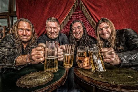 ‘One foot in the Grave’ was recorded at Gernhart Studio (Troisdorf, Germany) together with producer Martin Buchwalter (Destruction, Suidakra) in January 2017. The new artwork was brought to life by Patrick Strogulski, who is a student of Sebastian Krüger, the former Tankard cover artist. He also created the cover artworks for ‘A girl called Cerveza’ and ‘R.I.B.’.