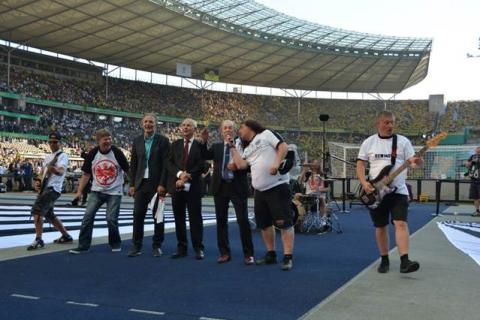 The Eintracht anthem... which has been played in the stadium for ten years, before every home game of Eintracht Frankfurt FC - has now been completely re-recorded by the band. The Thrashers were supported by Henni Nachtsheim (Badesalz), Ande Werner (Mundstuhl) and Roy Hammer (Roy Hammer and Die Pralinées), who can all be heard in the backing choir.