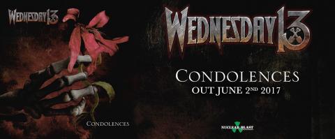 Wednesday 13 has revealed a brand new video for 'What the night Brings', the first track taken from his forthcoming album 'Condolences' which is set to land on 2nd June via new record label home, Nuclear Blast Entertainment. 'Condolences' will be released June 2nd 2017 via Nuclear Blast. The album was produced, mixed and mastered by Chris "Zeuss" Harris (Hatebreed, Rob Zombie). Artwork was created by Travis Smith (Opeth, Katatonia, Nevermore).